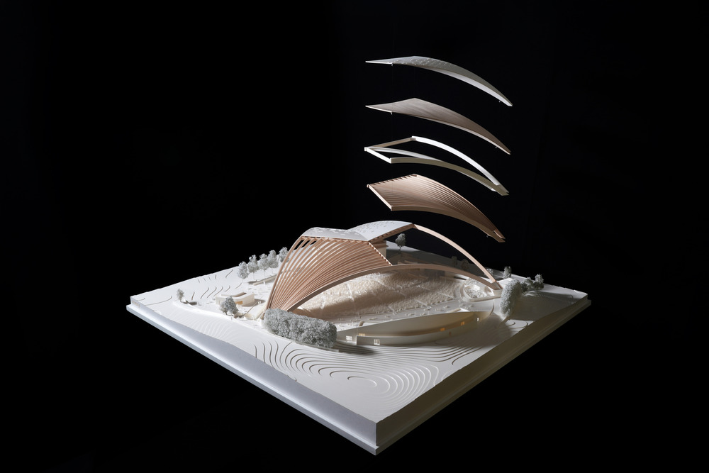 Použití výrobků z masivního dřeva má mnoho benefitů. Zlepšuje akustiku amfiteátru, zajišťuje vynikající odolnost vůči povětrnostním vlivům a také požární bezpečnost. Více než 2 000 kubíků použitého dřeva snižuje uhlíkovou stopu stavby, protože jde o místní obnovitelný materiál se schopností pohlcovat uhlík.
