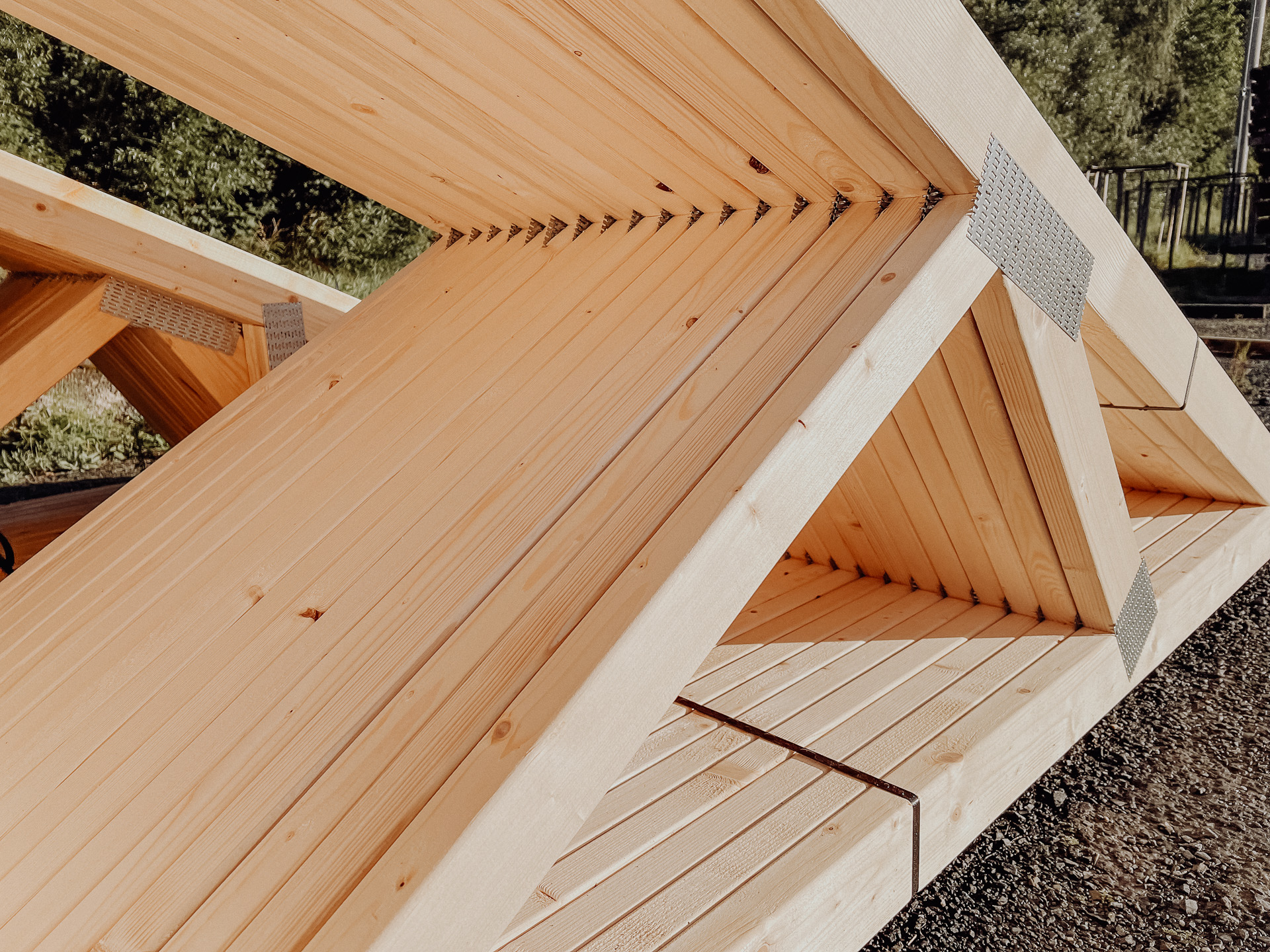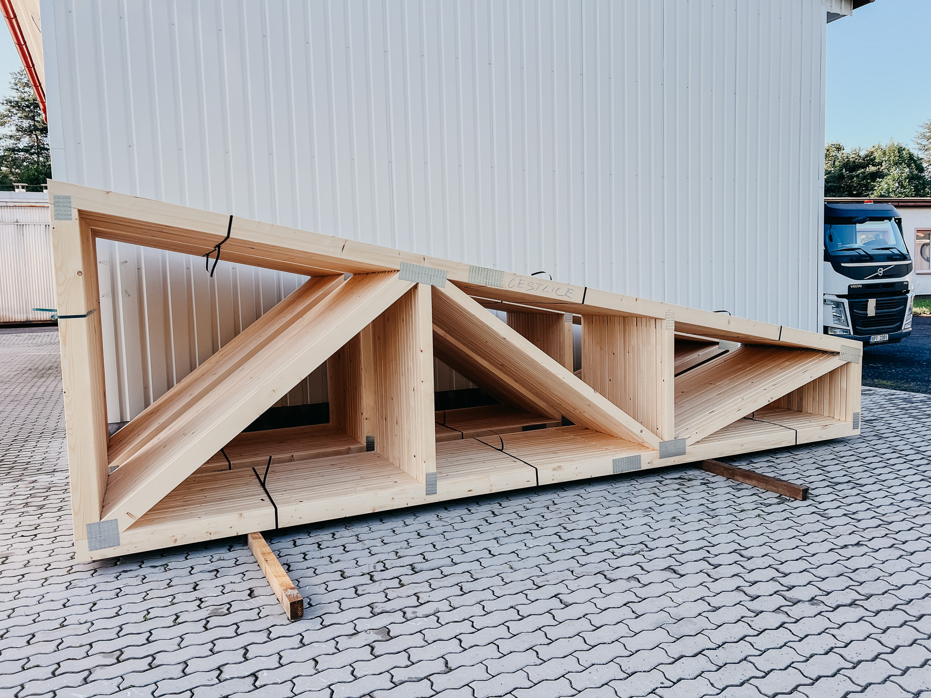 Dřevěné příhradové vazníky jsou nosné konstrukce, které podporují střešní plášť a většinou taky vynáší stropní podhled. Pro každou střechu se vazníky navrhují a staticky posuzují individuálně. Následně je vyrobí z kalibrovaného, vysušeného řeziva třídy S4S, které není třeba chemicky ošetřovat proti dřevokazným houbám, plísním nebo hmyzu. Jednotlivé prvky vazníku jsou navzájem spojené ocelovými styčníkovými deskami s prolisovanými trny.