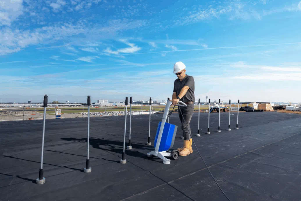 V této chvíli přichází ke slovu systém indukčního kotvení. Předností tohoto systému je zejména možnost využití největších šířek hydroizolace v celé ploše střechy s menším přesahem pásů a uchycení tepelné izolace a hydroizolace zároveň.