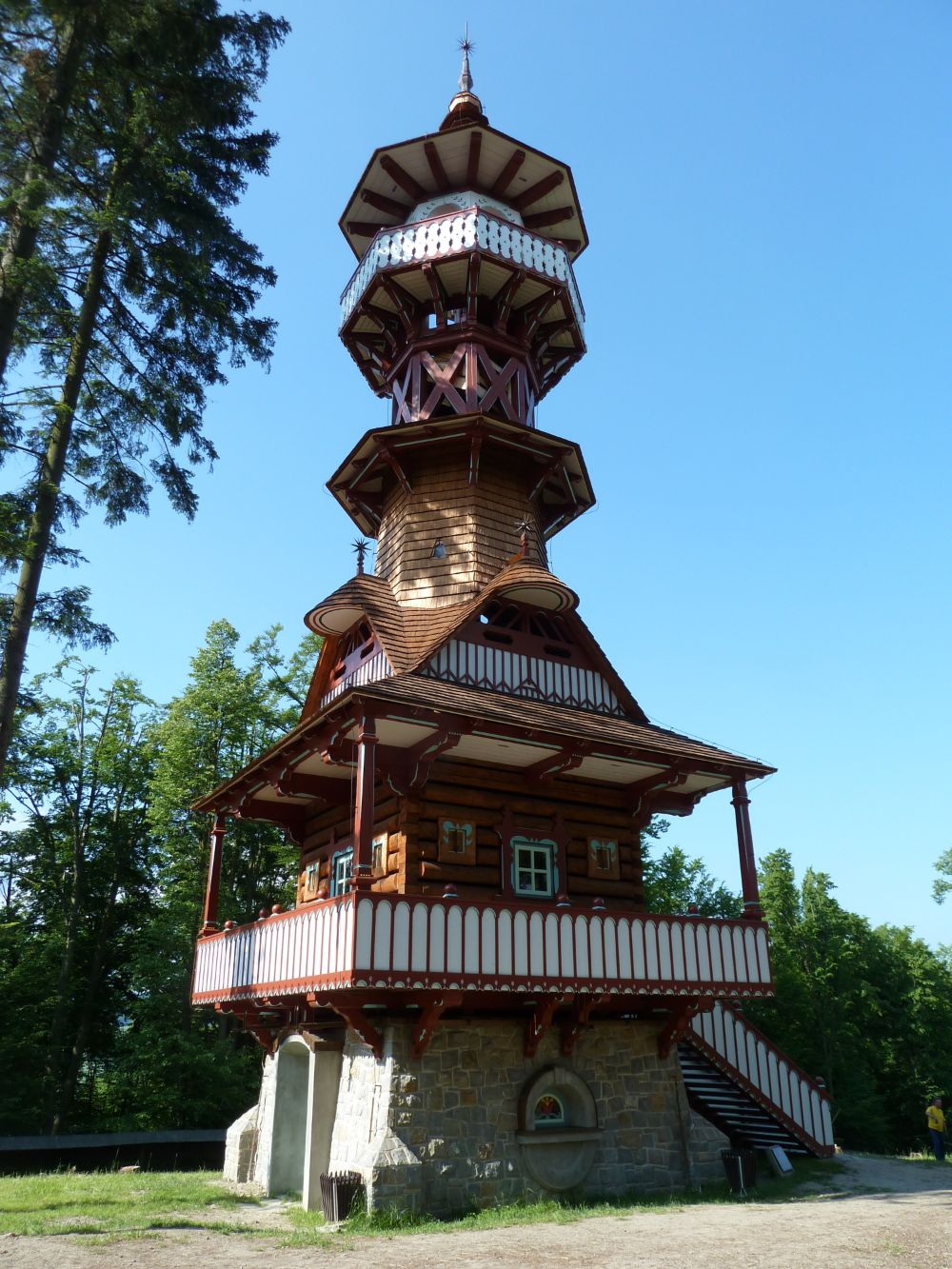 Třicet metrů vysoká stavba má sedm podlaží a vyhlídkovou plošinu ve zhruba v devatenácti metrech výšky. S umístěním v nadmořské výšce 480 metrů vám díky tomu nabídne impozantní výhled na Vsetínské vrchy, Beskydy s Radhoštěm, stejně jako na slovenské pohraničí.