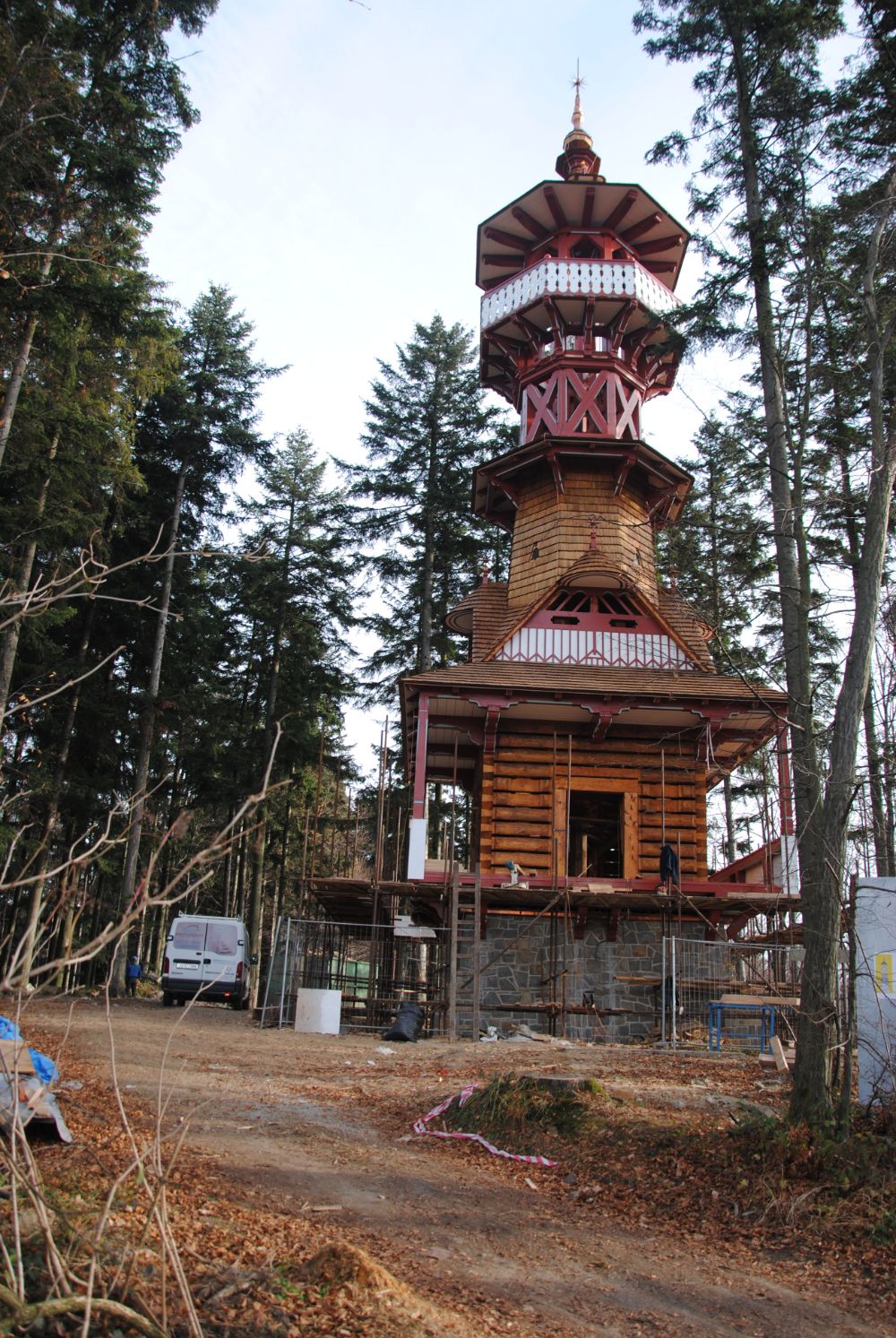 Skicu rozhledny vytvořil Dušan Jurkovič už v roce 1896, ale nikdy nebyla realizovaná. Že se tak přece jen stalo, je zásluhou architekta Antonína Závady staršího, neodmyslitelně spjatého se dřevem a také s Jurkovičovými stavbami. Díky tomu byl schopen vytvořit z jediné Jurkovičovy skici celý projekt, kterému nechybí charakteristický rukopis autora. Projekt za více než jedenáct milionů korun odstartoval v roce 2008 a výsledkem je skutečný unikát v secesním slohu.