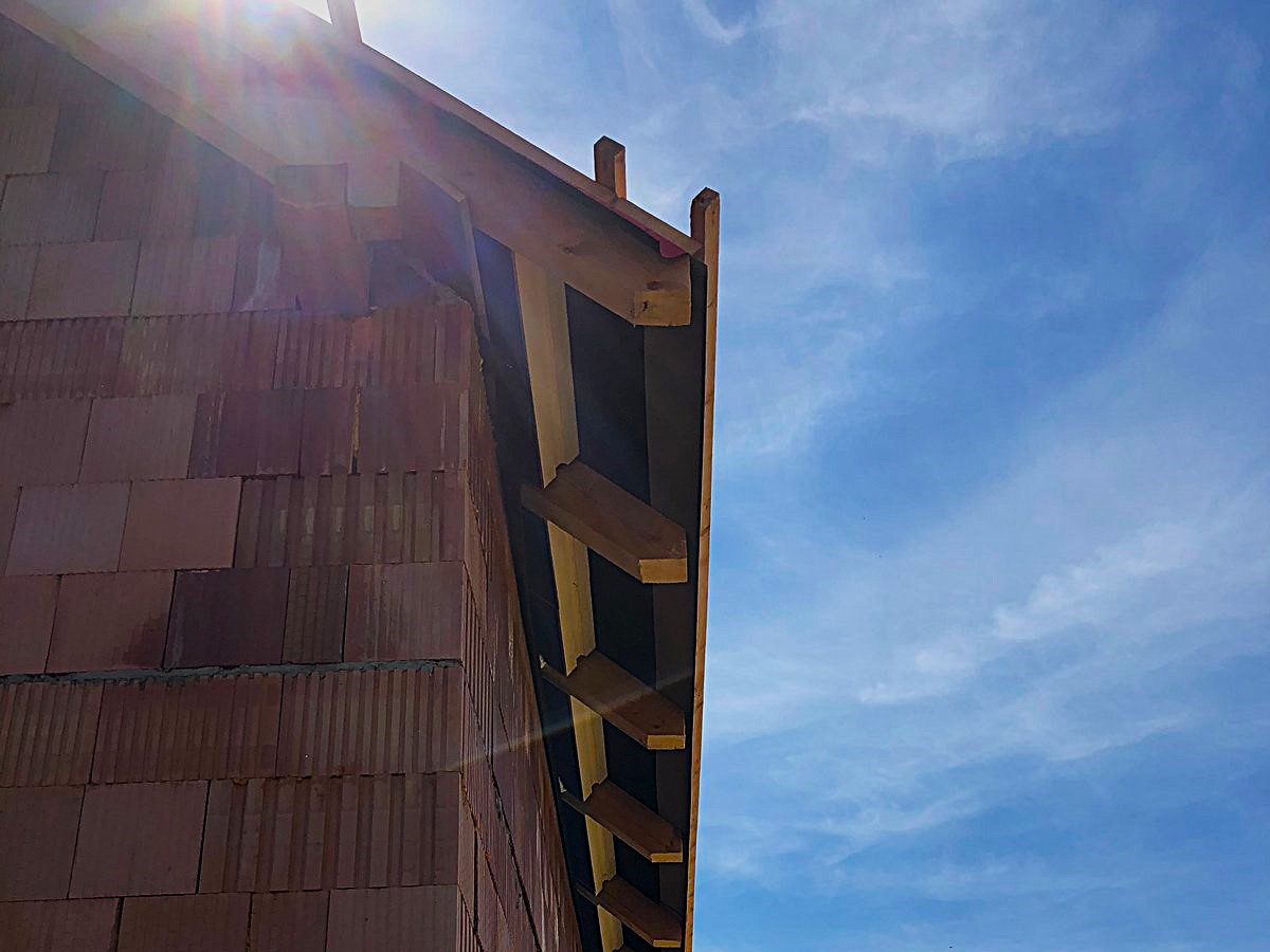 Pokud střešní konstrukce přesahuje přes štítovou hranu, pak pohledové bednění na krokvích nesmí procházet z interiéru do exteriéru. Dřevěné bednění je totiž velikým tepelným mostem. Také i v tomto případě musí být parozábrana vzduchotěsně napojená na obvodovou konstrukci. Tento detail bývá často opomíjený a důsledkem je pronikání studeného vzduchu okolo palubek do interiéru.