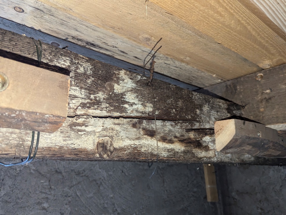 Plochou střechu, tedy horní plášť, vynáší dřevěná konstrukce, tvořená pozednicemi, sloupky, vaznicemi a trámy. U většiny dřevěných prvků průzkum prokázal zvýšenou vlhkost, zřetelné byly stopy po zatékání a také napadením dřevokazným hmyzem. Nízké podstřeší totiž není nijak větrané. Jediné kulaté okno slouží pouze k prosvětlení prostoru, jinak je trvale uzavřené. Za velké mínus znalec označil i zbytky kůry na některých prknech a trámech, stejně jako absenci impregnace.
