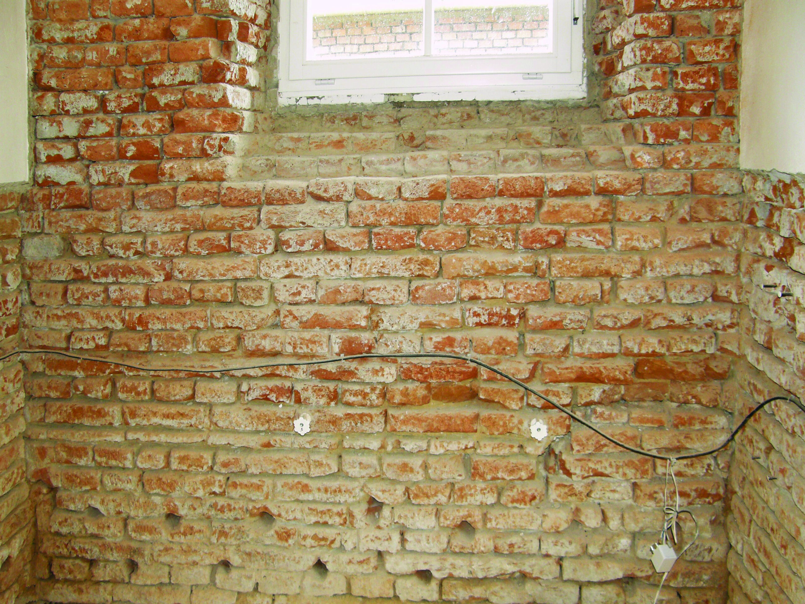 Poté celou zeď opět navlhčíme, připravíme jádrovou omítku (OS-401) v bubnové míchačce při co nejnižších otáčkách a po 12 až 15 minutách můžeme přistoupit k její aplikaci. Nanáší se v tloušťce 20 až 30 milimetrů, optimální vrstva je 25 mm. Pokud budete potřebovat tloušťku 30 až 40 mm, provádějte ji ve dvou vrstvách. Mezi jednotlivými vrstvami nechejte prodlevu jeden den, přičemž se podklad musí zdrsnět a opět navlhčit.