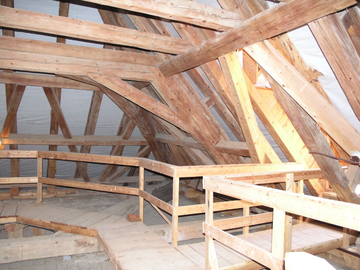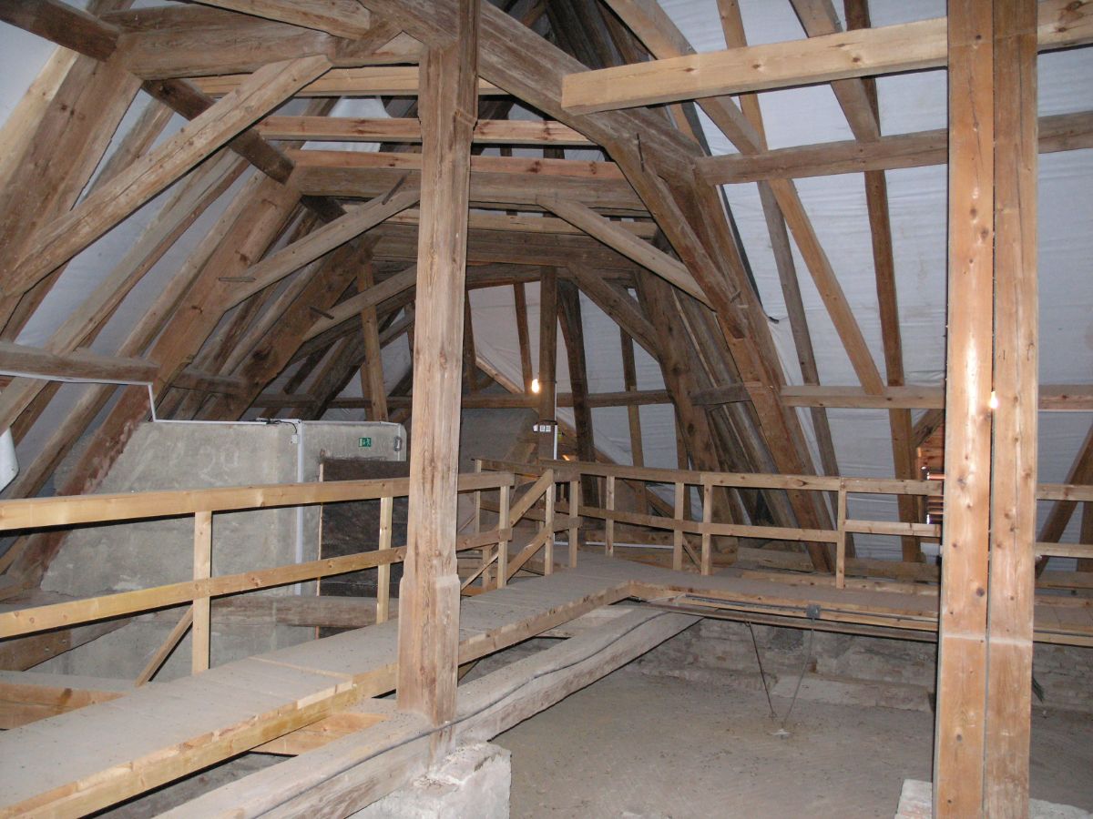 Laika i odborníka překvapí parametry použitých trámů. Smeknout je třeba před složitými konstrukčními detaily, kdy se v jednom místě sbíhá několik trámů z různých stran. Nepřehlédněte ani řešení krovu v místech, kudy procházejí mohutná komínová tělesa. Musela být zhotovena tak, aby konstrukce bezpečně držela, do střechy neteklo a zároveň aby nedošlo ke vznícení dřeva od horkého komínu.