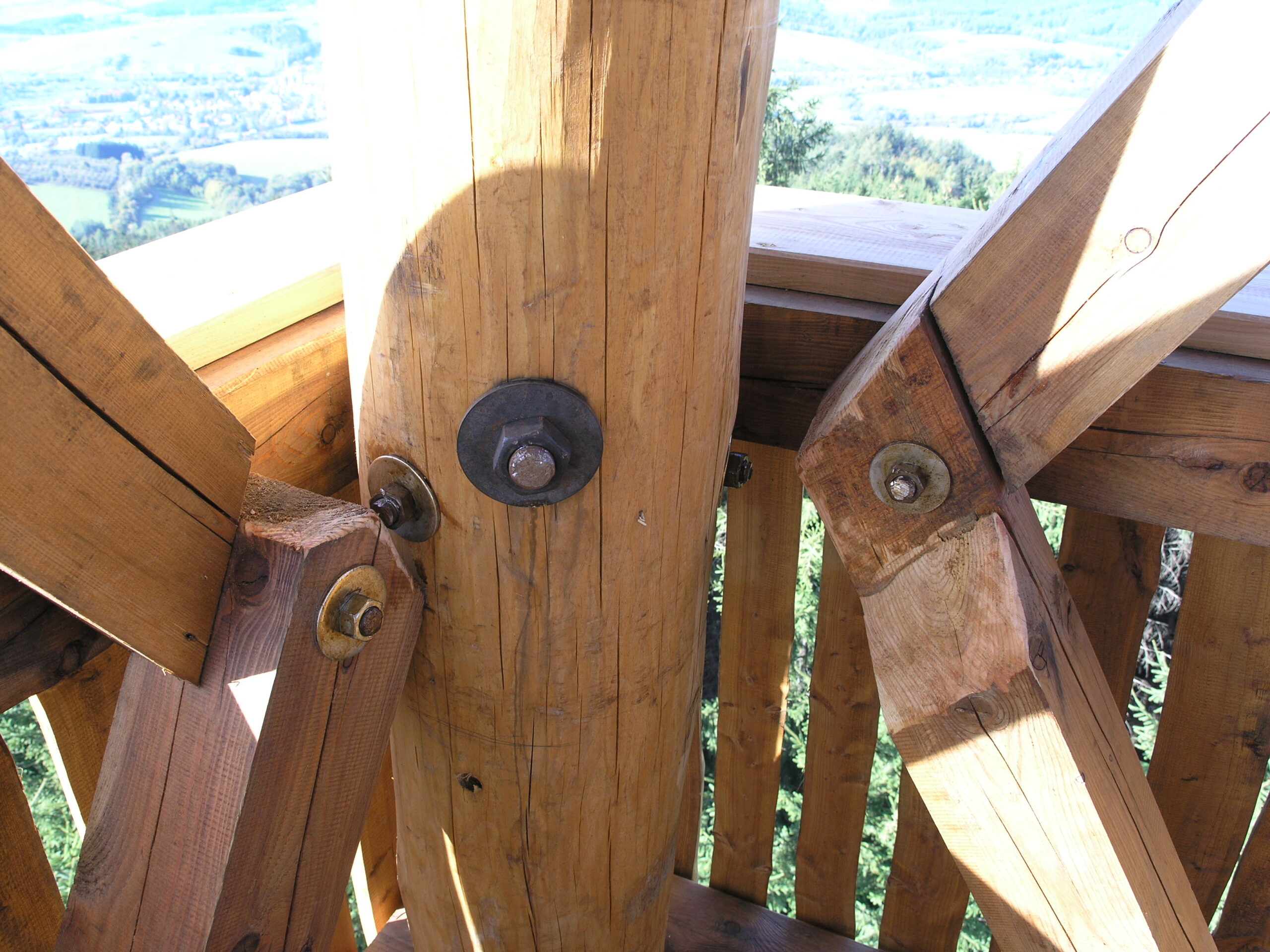 Protože se jedná o stavbu v náročných podmínkách, která slouží široké veřejnosti, posuzovali její návrh nezávisle na sobě dva statici. A výsledek? Konstrukce je předimenzovaná. To je ale nutná podmínka pro dřevostavbu v exteriéru. Díky tomu se i ve výšce nad korunami stromů můžete cítit bezpečně.