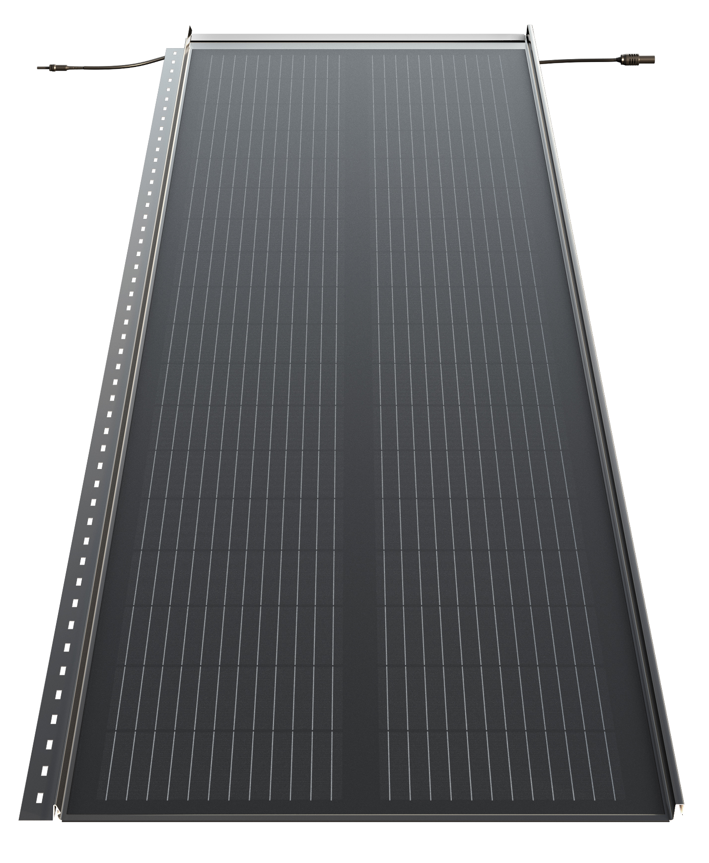 Části systému s aktivními FVE-panely mají rozměry 200 × 55 cm. Neaktivní panely, které se dají klempířsky upravovat, mají rozměry 100 × 55 a 200 × 55 cm. Součástí fotovoltaiky SOLROOF jsou samozřejmě i systémové doplňky – žlaby, hřebenáče a závětrné lišty, do kterých se instalují optimizéry.