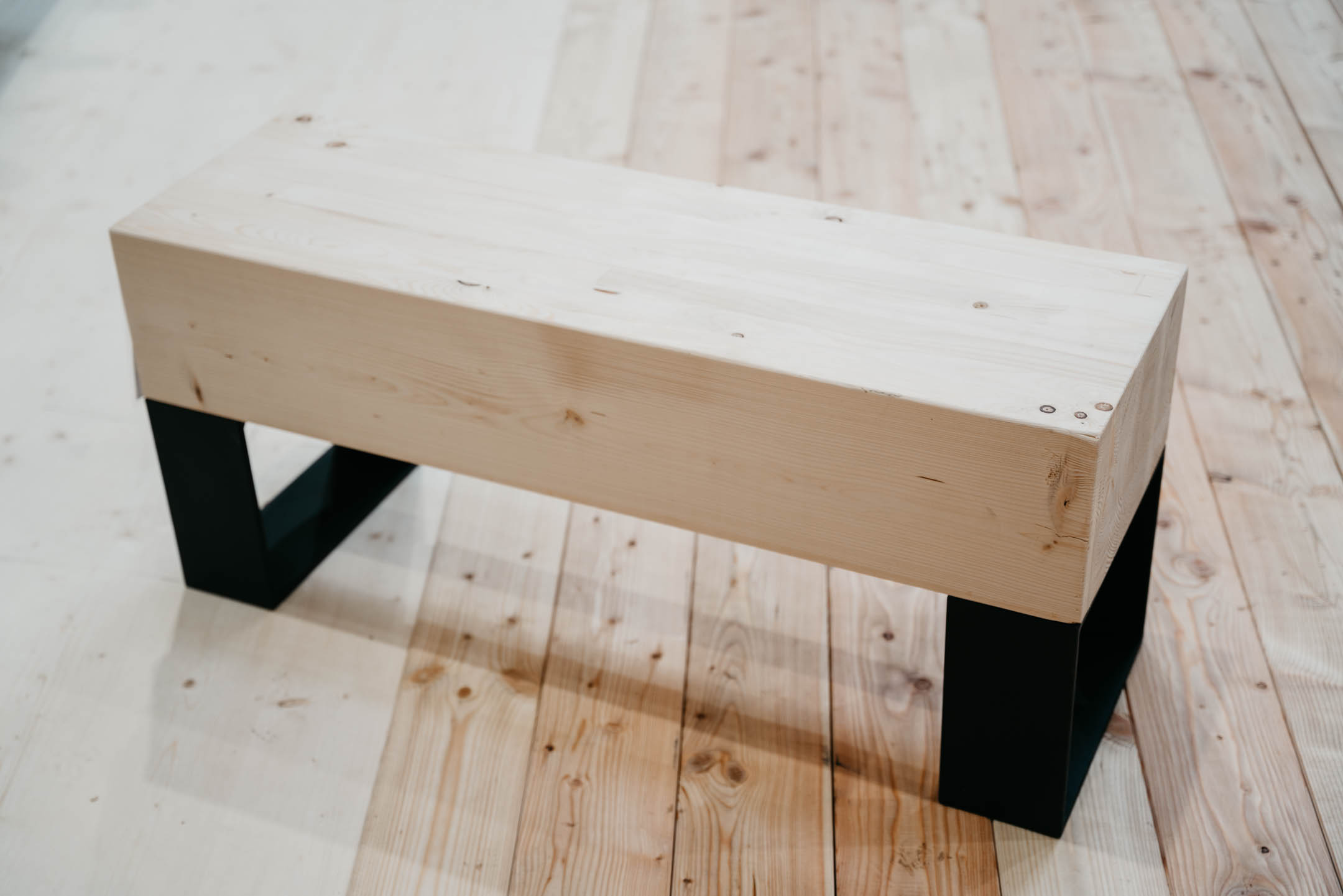Dřevěná lavice z masivního hranolu s ocelovou podnoží v antracitové barvě je designovým i funkčním doplňkem moderní architektury. Je možno ji použít v exteriéru i interiéru.