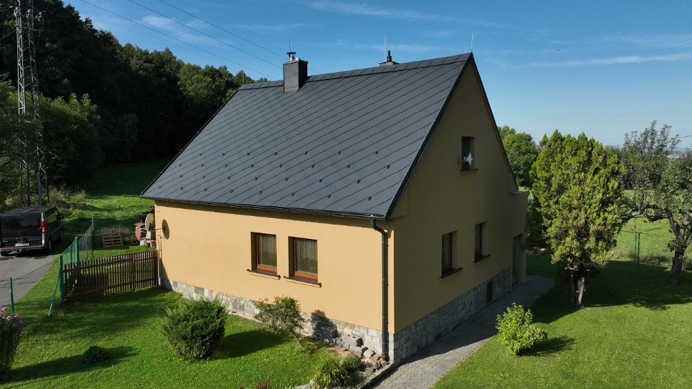 Díky přirozeně nízké hmotnosti plechových šablon je možné provést výměnu krytiny, aniž by kvůli zvýšení statického zatížení bylo nutné předělávat konstrukci krovu. Kvalitu střešní krytiny SATJAM Rombo Metalic pak potvrzuje také získané ocenění Česká kvalita – osvědčeno pro stavbu.